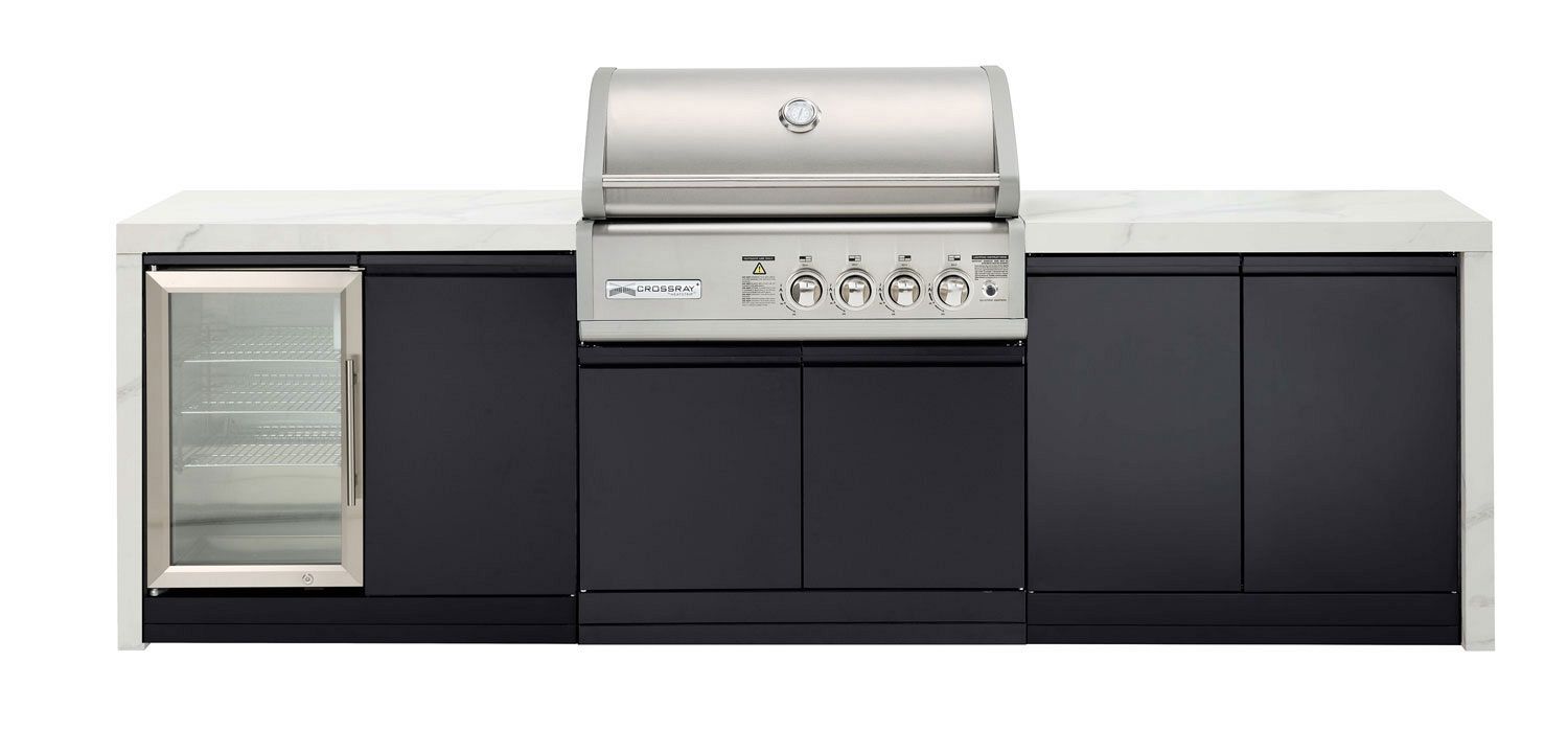 The New CROSSRAY 4B-S Series sets a new standard for outdoor kitchens, if you are looking for a high-end outdoor cooking experience, without the price tag. Upgraded corrosion resistant cabinets provide the perfect platform for the new sintered stone benchtop that is supplied as standard with all kitchens. Designed to perfectly match the award-winning 4 burner CROSSRAY in-built infrared gas BBQ, it is ideal if you love cooking and entertaining outdoors, in style.