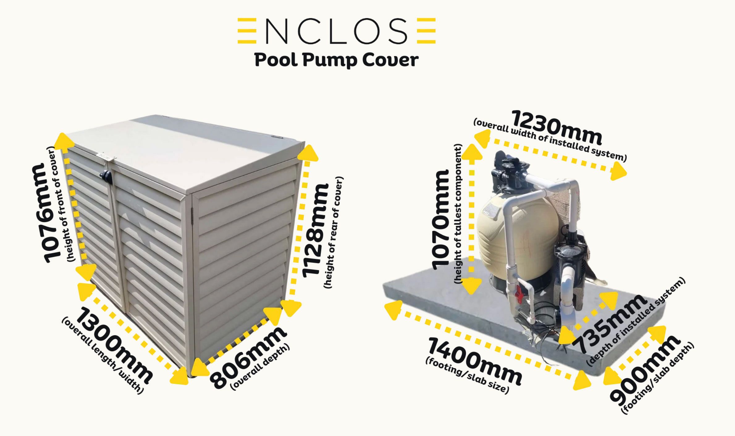Enclose premium range of aluminium pool pump covers are the perfect finishing touch for your pool oasis. Our proudly NZ made pool pump covers, are made from top grade NZ extruded aluminium – with welded louvre panels. Designed to go beautifully with your outdoor setting and compliment your existing features and powdercoated any standard Dulux colour of your choice.