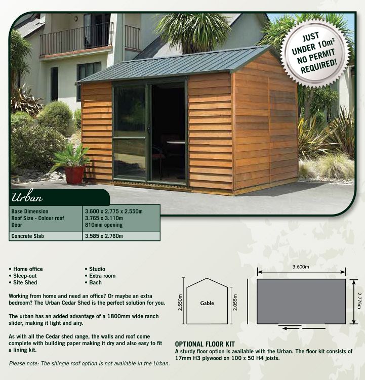 | Cedar Shed - Colour Steel | 3660mm | 2775mm | 2550mm |