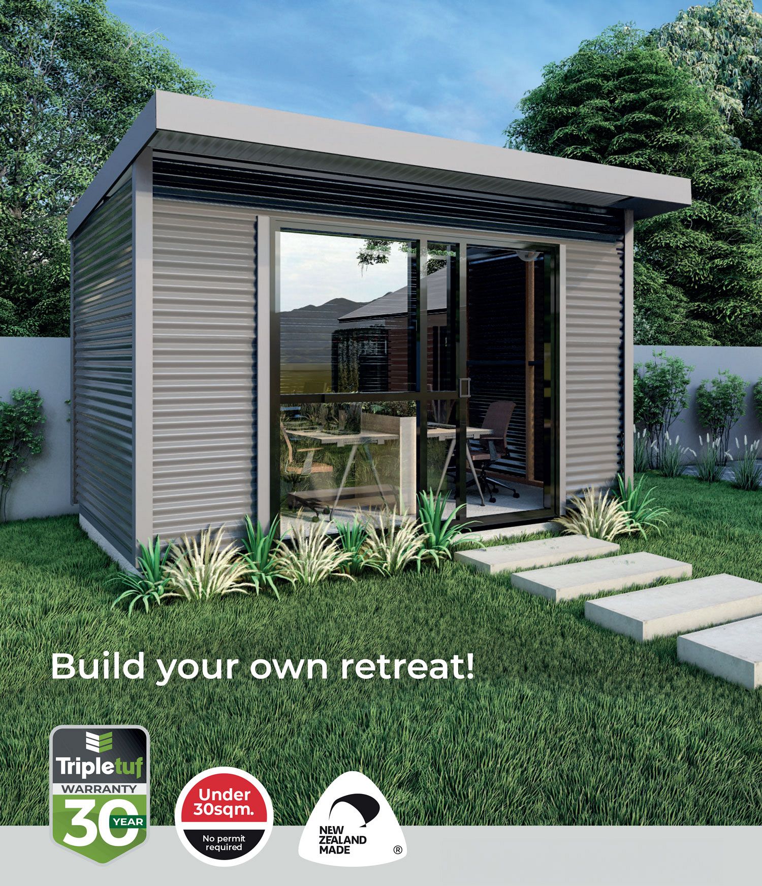 With its timeless design, featuring horizontal corrugate cladding and wide gauge box flashings, the Duratuf Lifestyle Kaipara Cabin or Sleepout will make a striking addition to any landscape. Available in a wide range of beautiful colours, this cabin is sure to complement your existing surroundings.