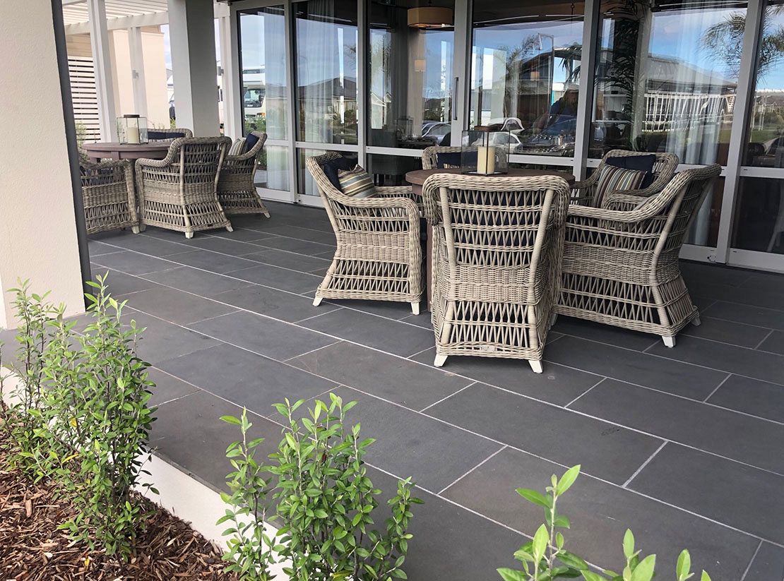 Bluestone pavers are generally offered externally with a rubbed surface texture this ensures plenty of slip resistance for external use around pools and other wet areas. This can be confirmed with Opus test results.