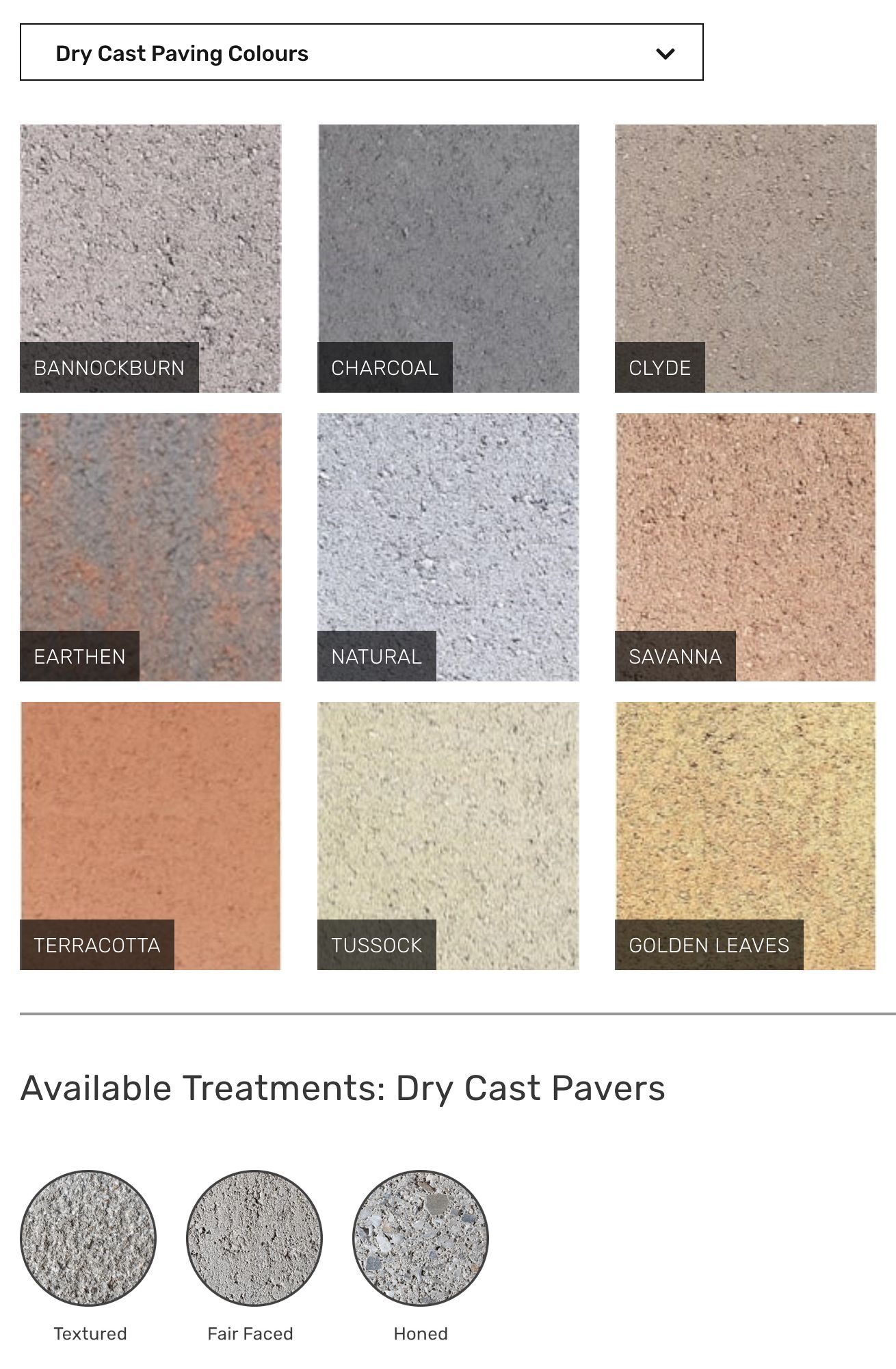 Note: Colours below are indicative only. Viewing a sample before purchasing product is recommended. Our pavers are made in NZ with locally sourced natural materials and as such colour variation between regions is expected. Not all colours are available throughout NZ, please talk to us about colours and range available in your area.