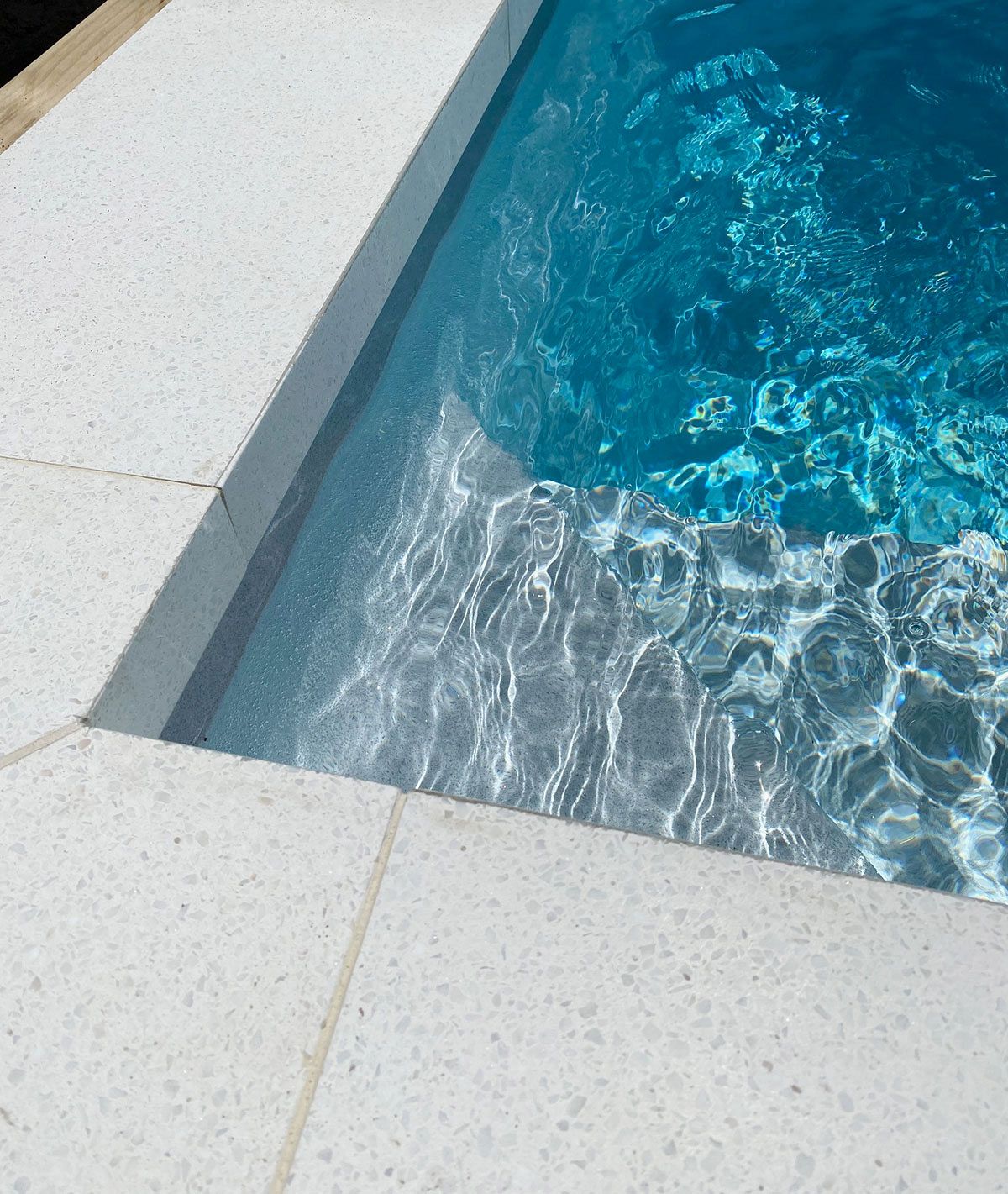 Terrazzo Veneto honed paving is perfect for all applications:- patios, paths and around swimming pools. Veneto honed pavers are unique in their method of manufacture, they combine a range of high quality raw materials, these are individually hydraulically pressed at 200 ton PSI before being honed to reveal the aggregate within.