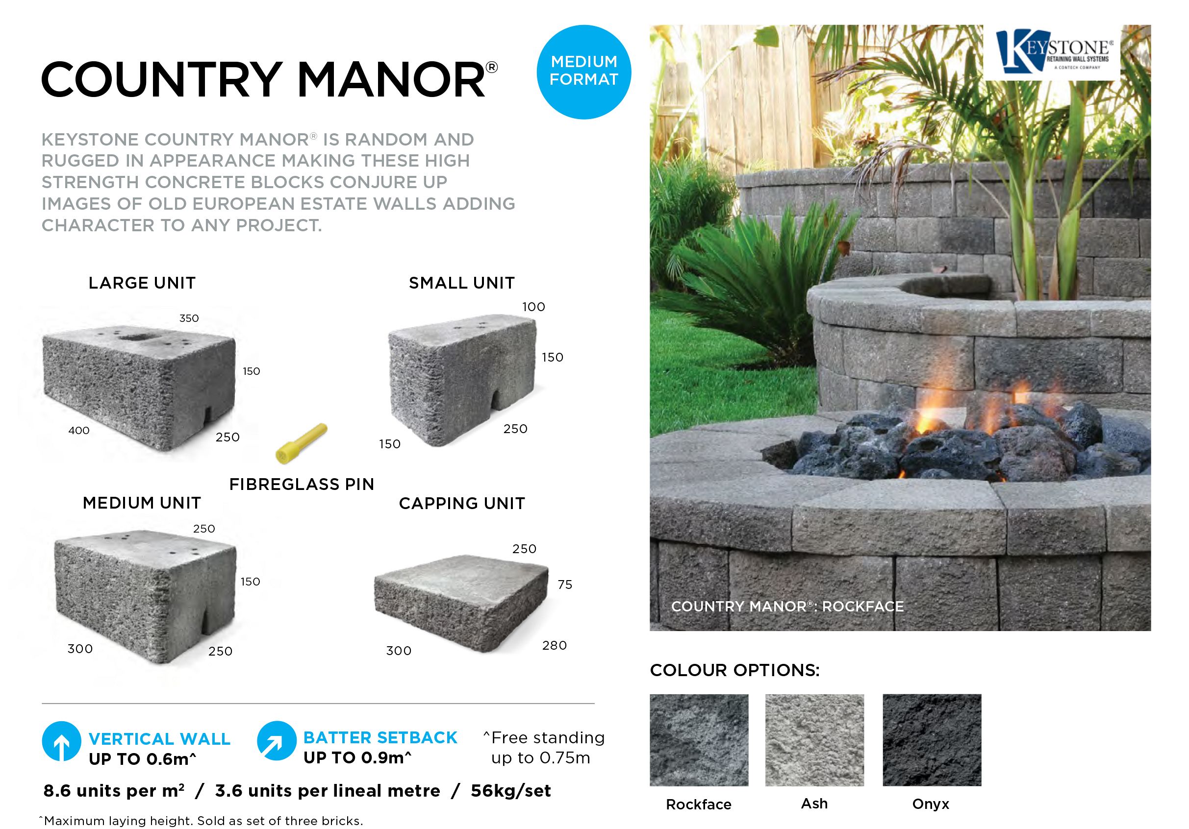Keystone® Country Manor® 4 piece Retaining system is perfect for both retaining wall and freestanding wall applications.