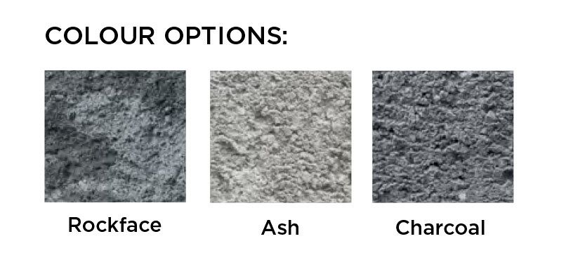 RANDOM AND RUGGED IN APPEARANCE MAKING THESE HIGH STRENGTH CONCRETE BLOCKS CONJURE UP IMAGES OF OLD EUROPEAN ESTATE WALLS ADDING CHARACTER TO ANY PROJECT.
