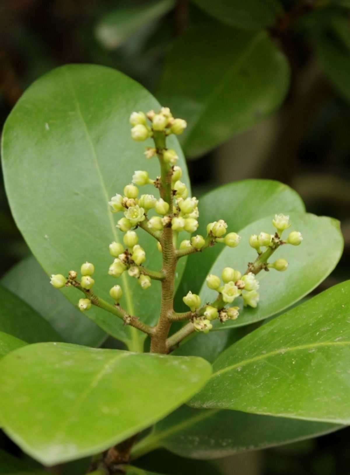 A moderately fast-growing tree with large glossy green leaves. Small creamy-green flowers in September followed by large orange fleshy drupes in December. Very hardy withstanding strong winds coastal conditions and drought. An excellent specimen tree able to be trimmed to shape. |