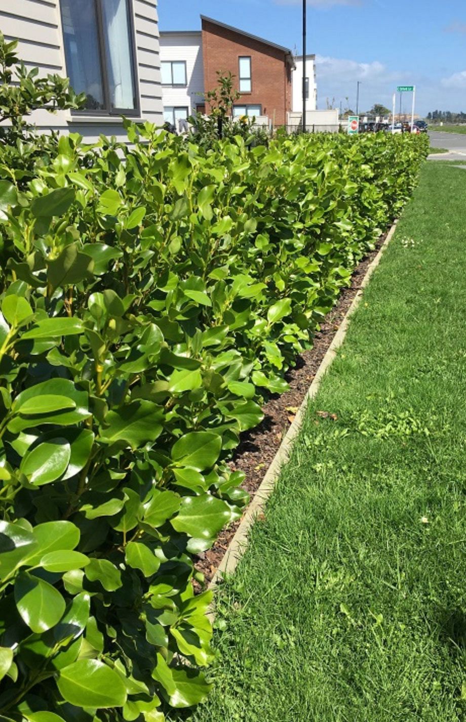 Lime-green leaves are glossy with a slightly wavy edge. Can be clipped to form a hedge. Withstands coastal conditions strong winds and frosts. |