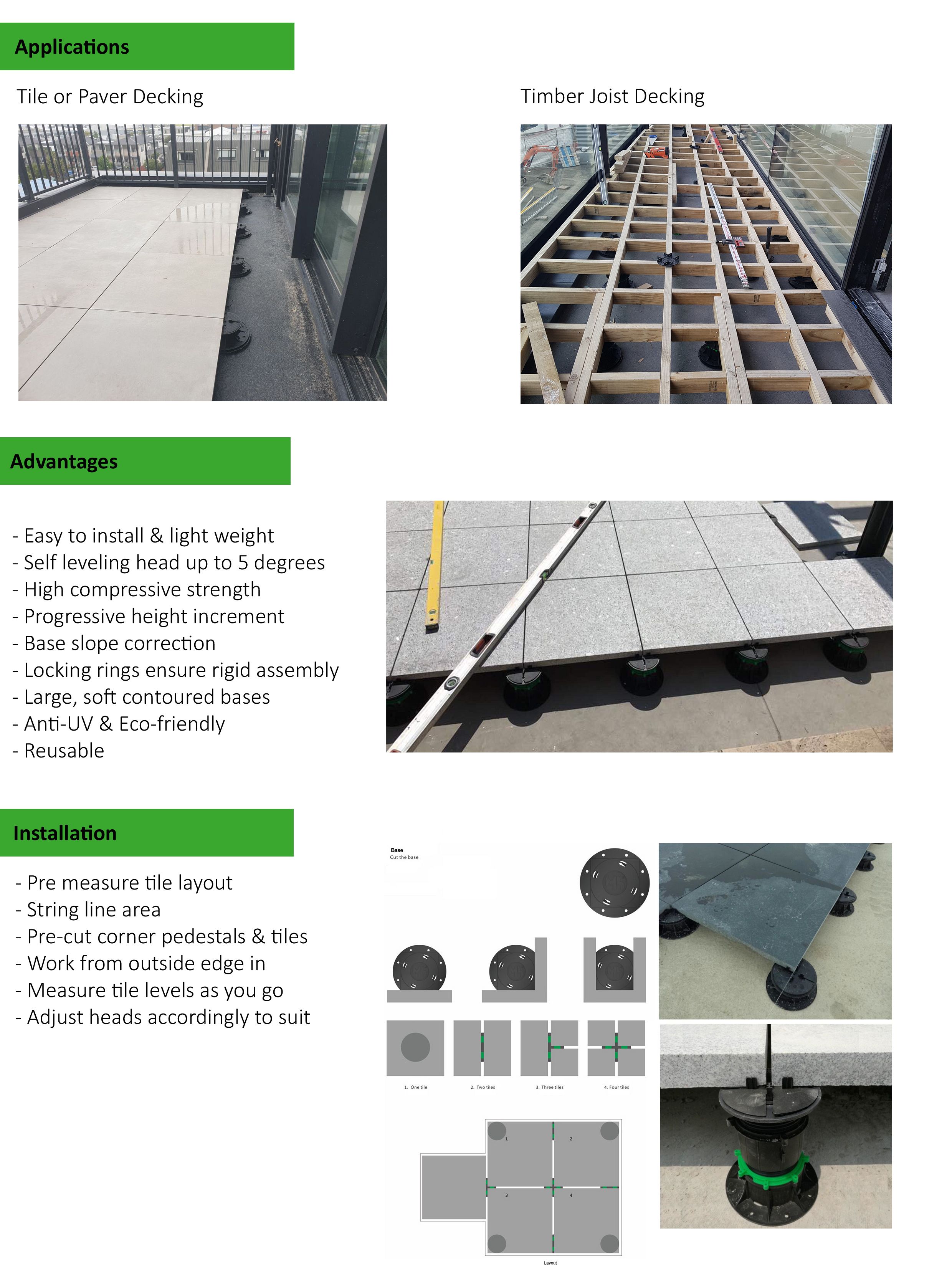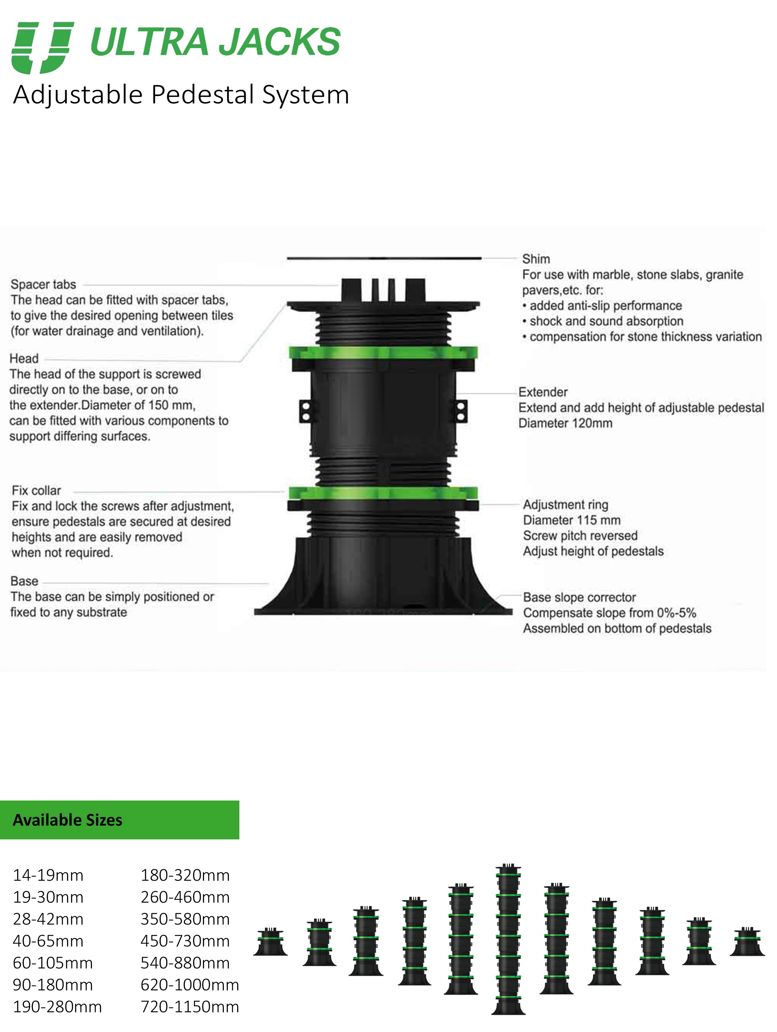 UltraJack is an adjustable plastic pedestal designed to support our CMP brand of structural porcelain tile and they can also be used to support our natural stone products. UltraJacks are commonly seen supporting tile installed over decks covered with waterproofing membrane this system quickly and simply allows for compliance under E3 of the New Zealand building code.